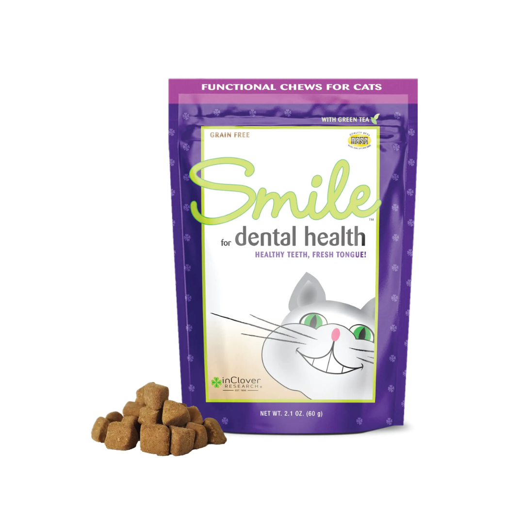 In Clover Smile Daily Dental Health Soft Chews for Cats Support Healthy Teeth and Fresh Tongue with Catnip and Green Tea Prebiotics and Chlorophyll for Fresh Breath