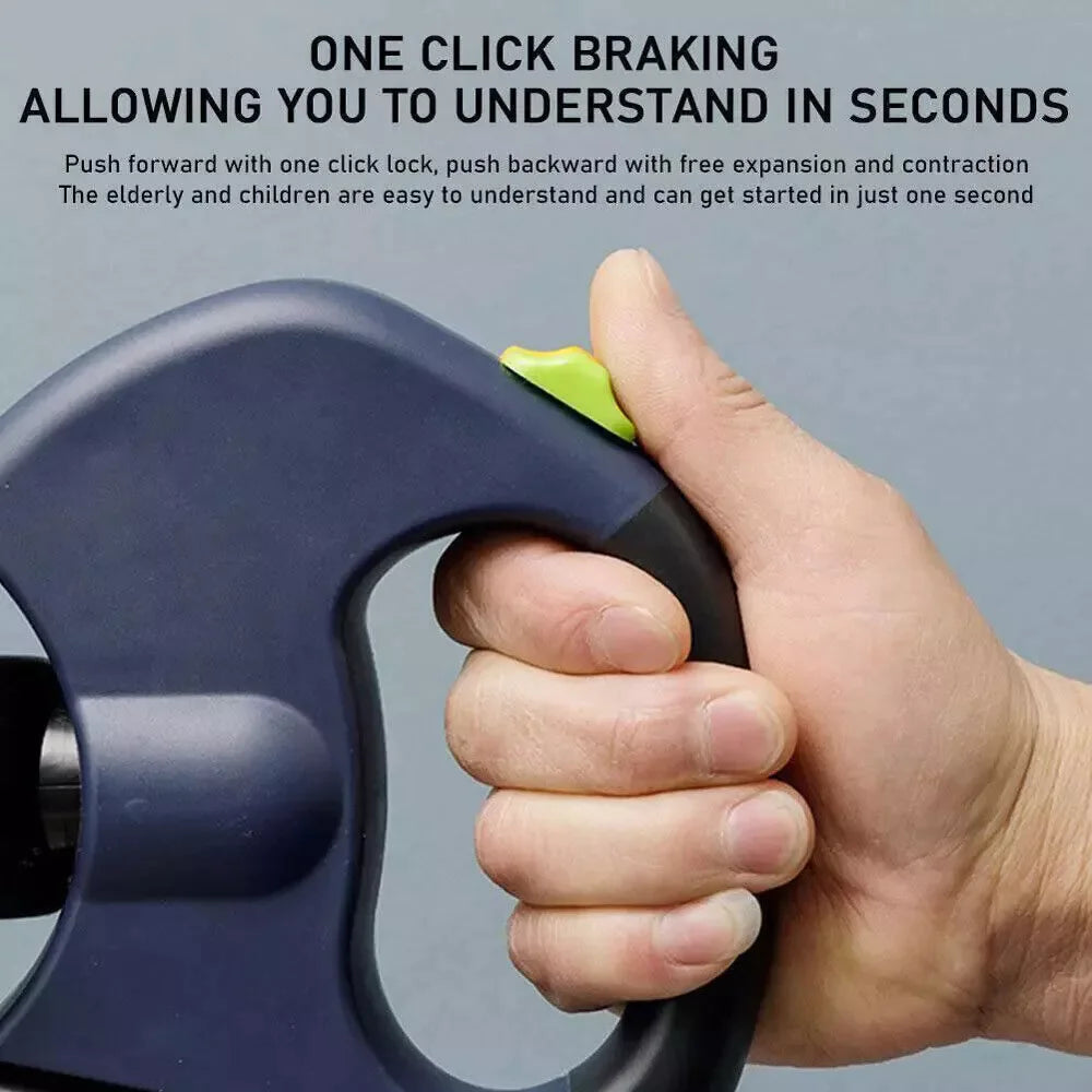 🔒 **One-Click Safety Lock System** – Gain instant control with the one-click safety lock, allowing you to lock and unlock the leash in seconds, ensuring your pups stay safe and secure.
